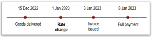 但し、インボイスの発行、代金の受領、財の移転又はサービスの提供(Basic Tax Point)のいずれかが税率変更日をまたぐ取引の場合、いくつかの経過措置が定められており、以下にその一部を記載致します。